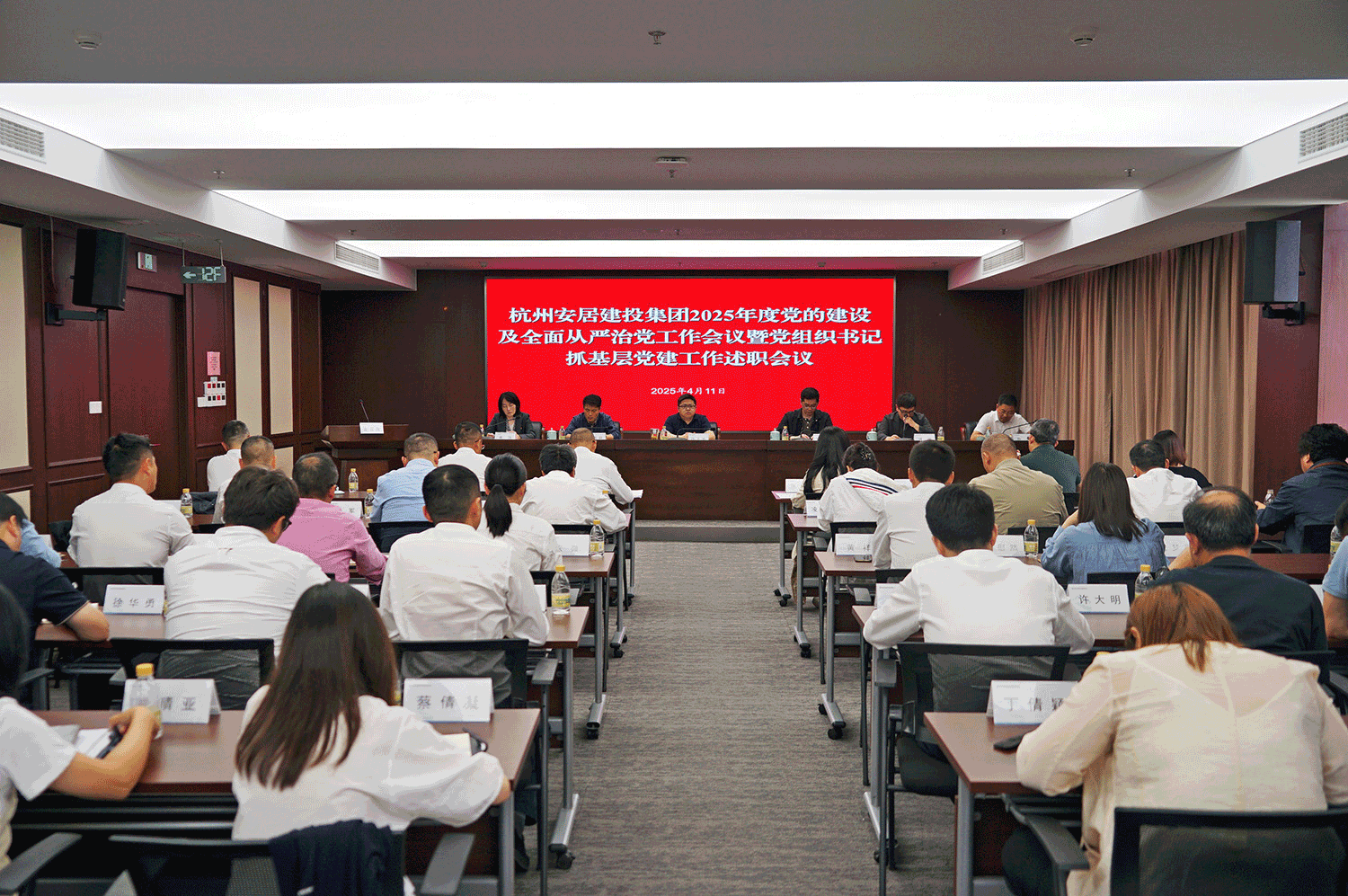 4月11日下午,安居建投集团召开2025年度党的建设及全面从严治党工作会议暨党组织书记抓基层党建工作述职会议。集团领导班子,各全资(控股)企业班子及相关部门负责人,集团本级中层干部参加会议。集团党委委员、副总经理朱旭伟主持会议。