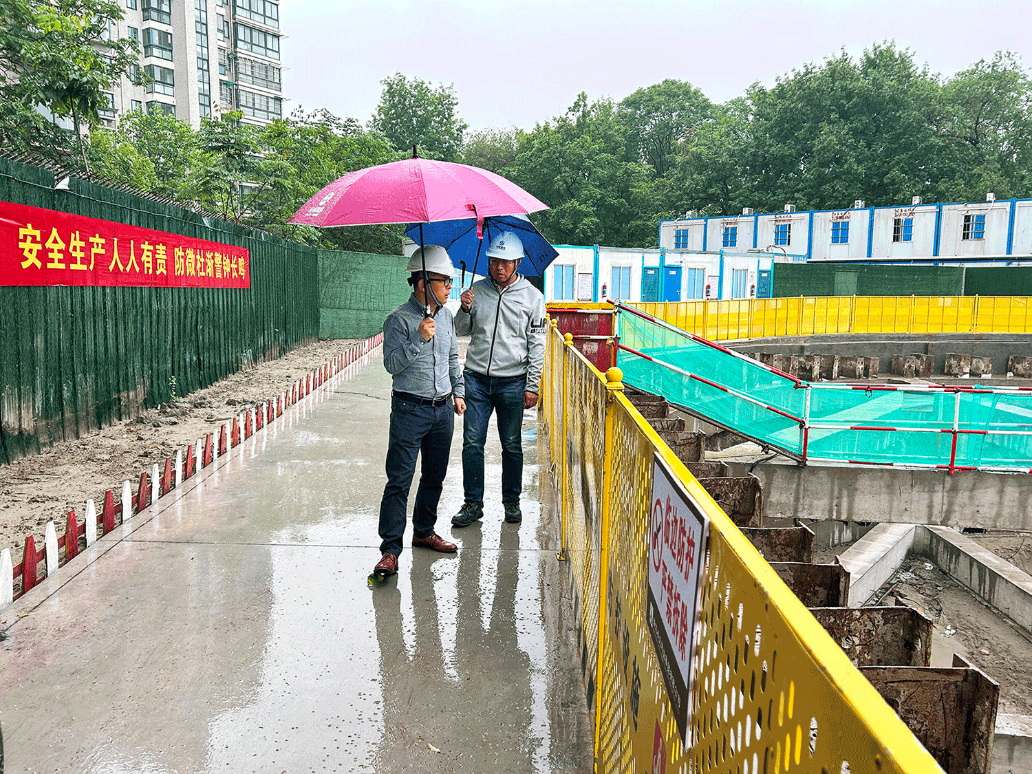 集团党委副书记、董事、总经理许干华带队赴杭州第九人民医院二期建设项目开展安全检查,重点检查基坑支护、临边防护及施工机械安全管理情况。许干华总经理提出了以下三点要求:一要压实安全生产主体责任,督促参建单位严格落实安全管理制度,确保安全措施落地见效。二要深化施工现场安全管理,加强常态化隐患排查治理整改闭环。三要强化防汛抗台应急准备,针对桩基施工受天气影响较大的特性,精细化迭代防汛预案,储备充足应急物资。